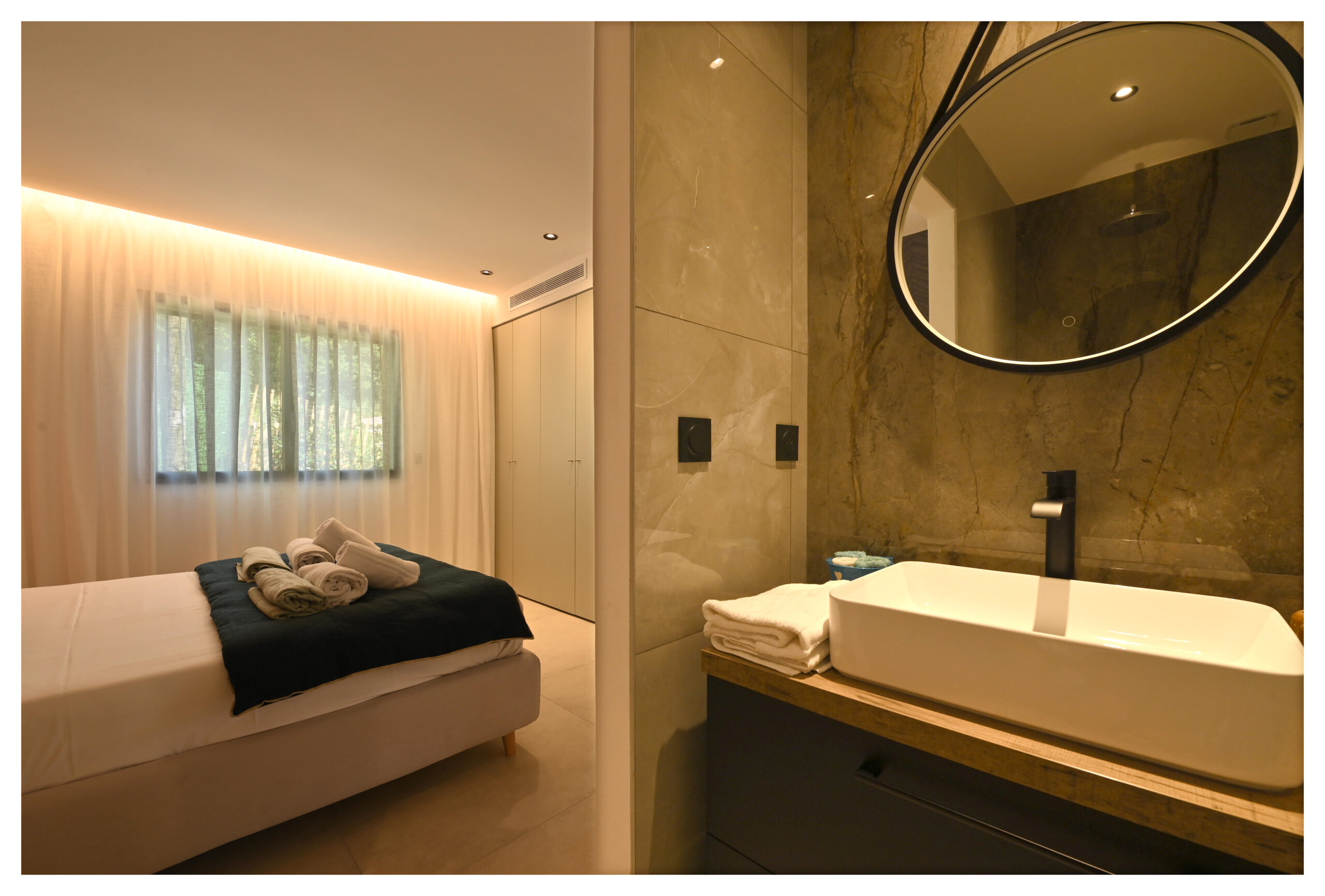 L’ensemble vous offre des prestations haut de gamme avec une literie de qualité et des matériaux nobles et un confort optimal.