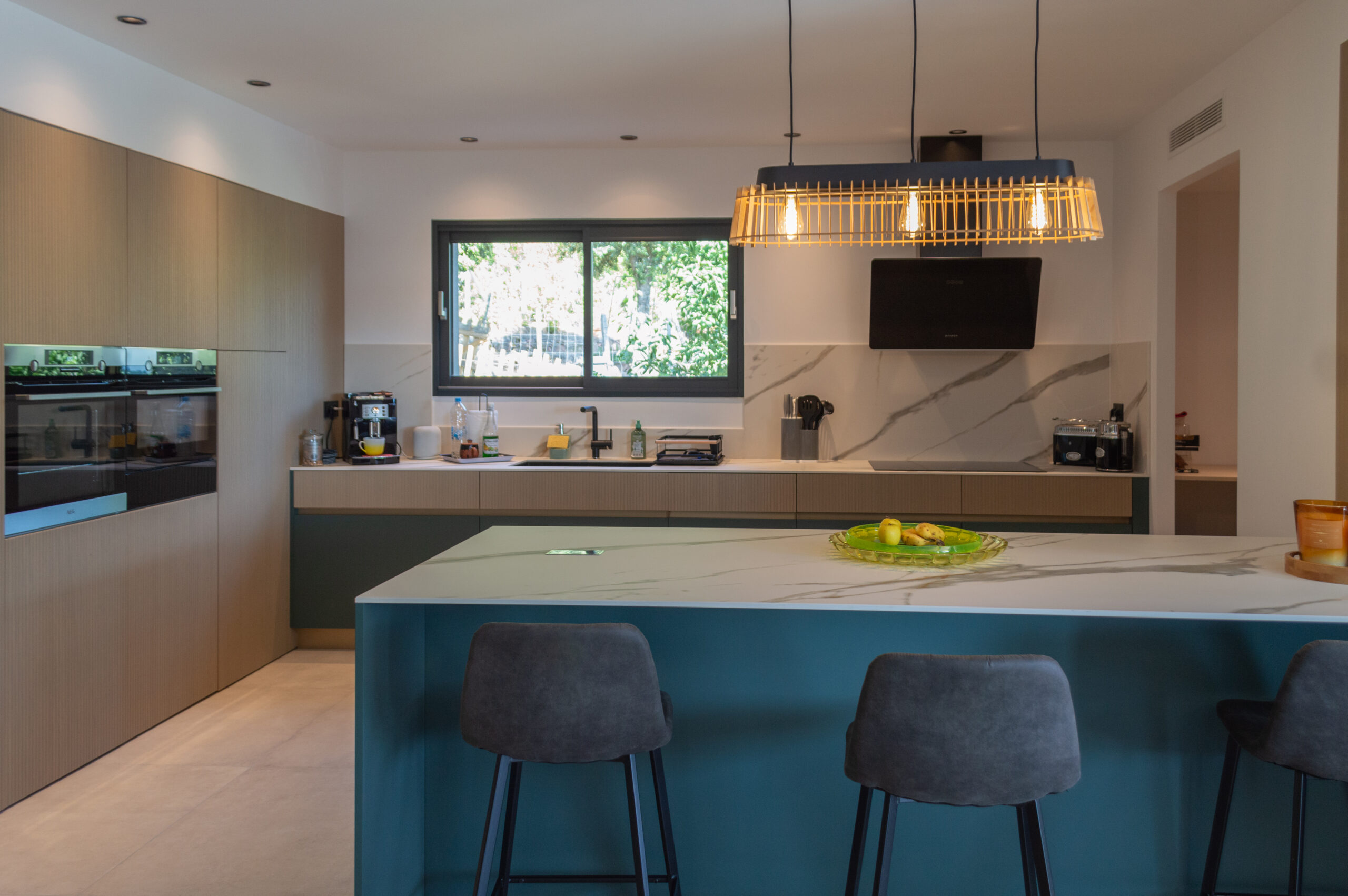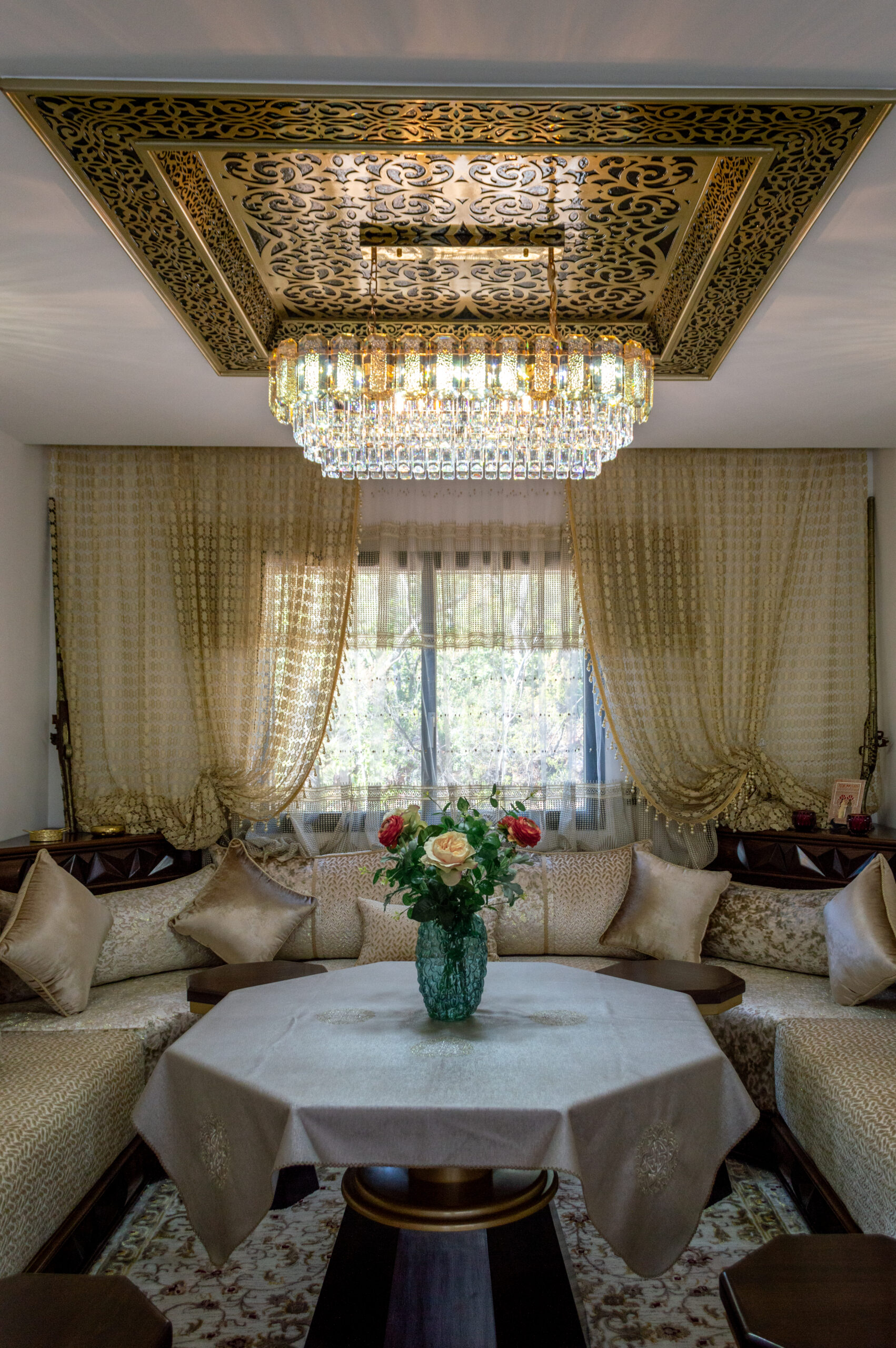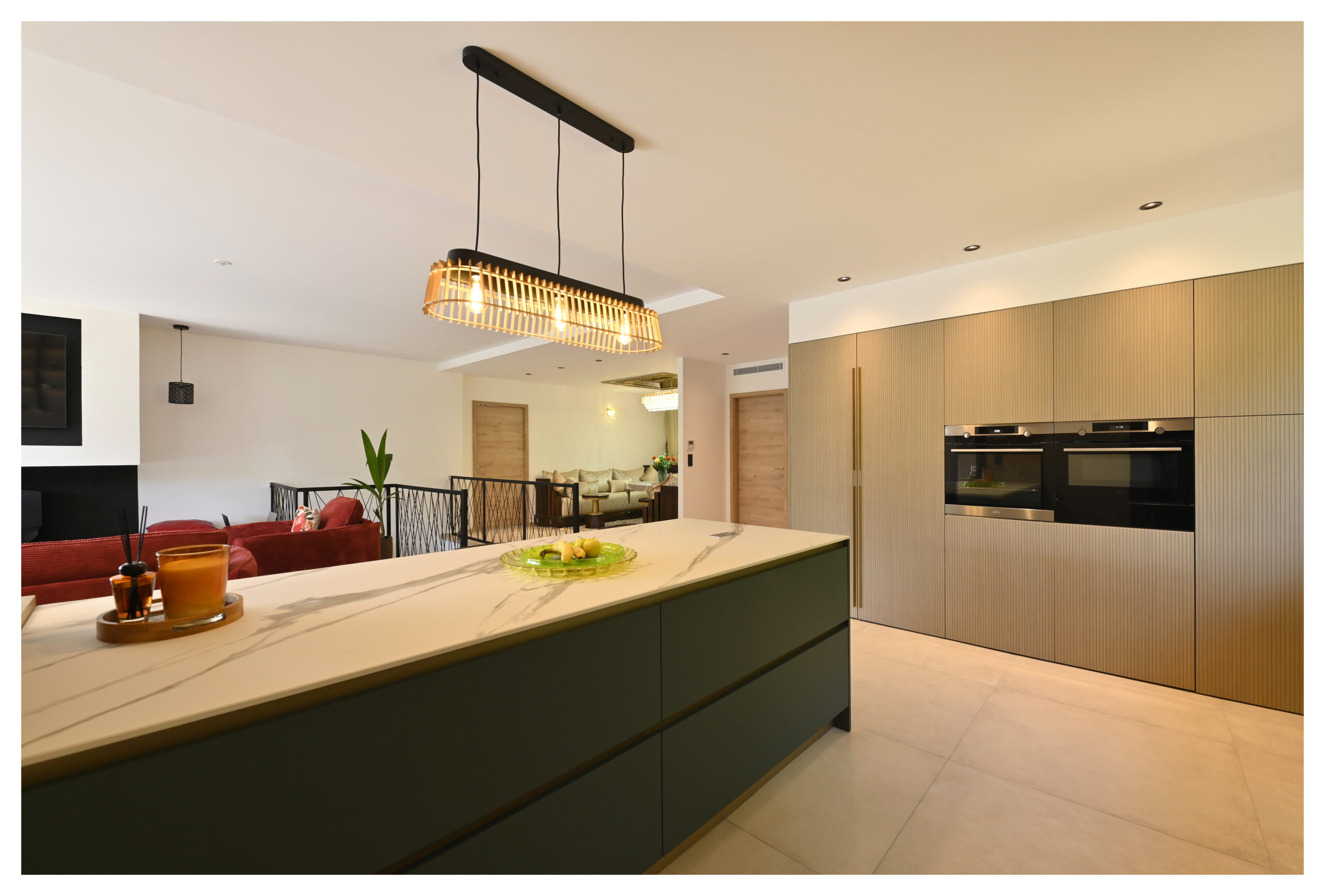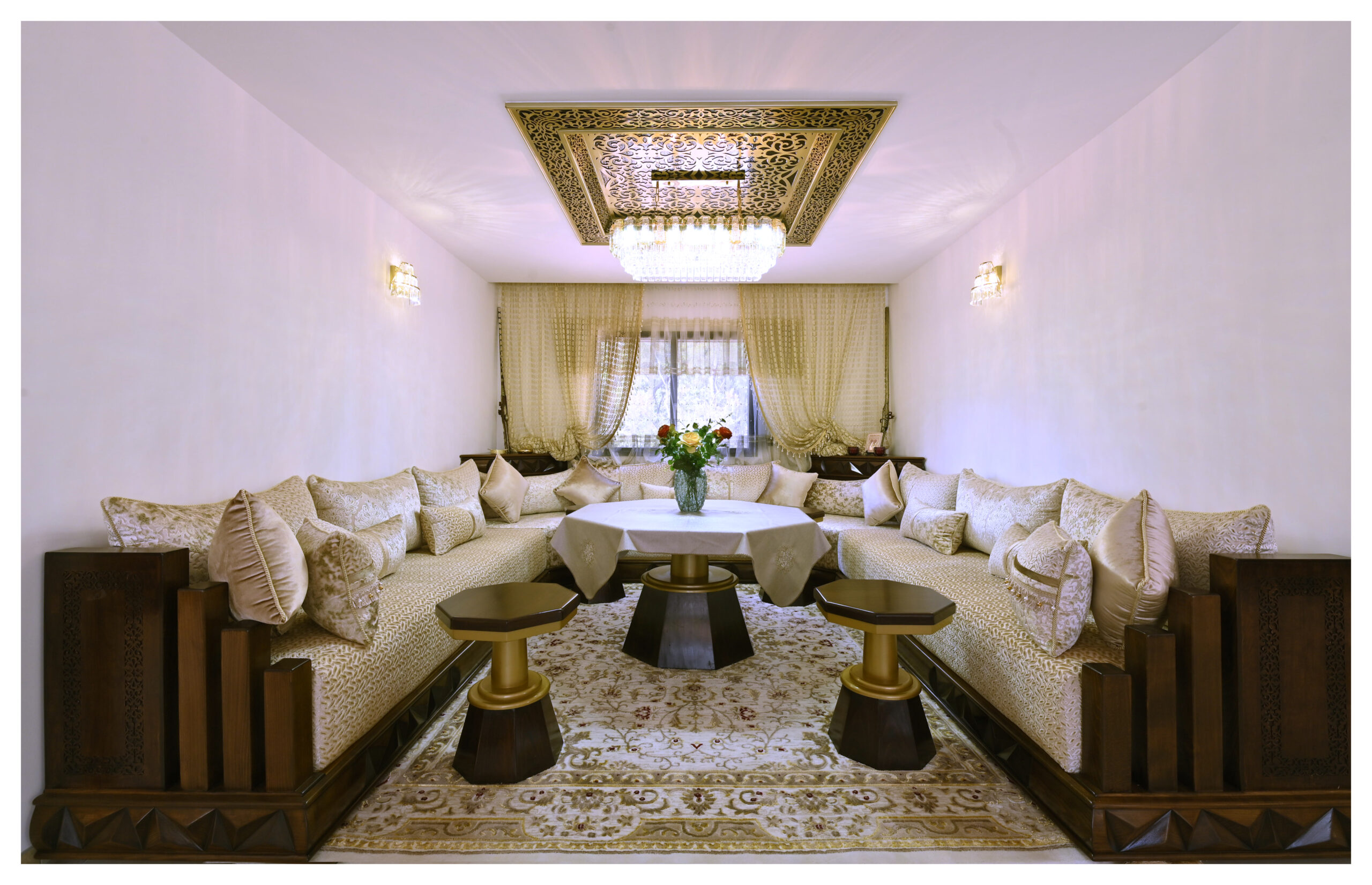L’élégant salon marocain et la cuisine design toute équipée, confère à cette villa un caractère luxueux et exotique.