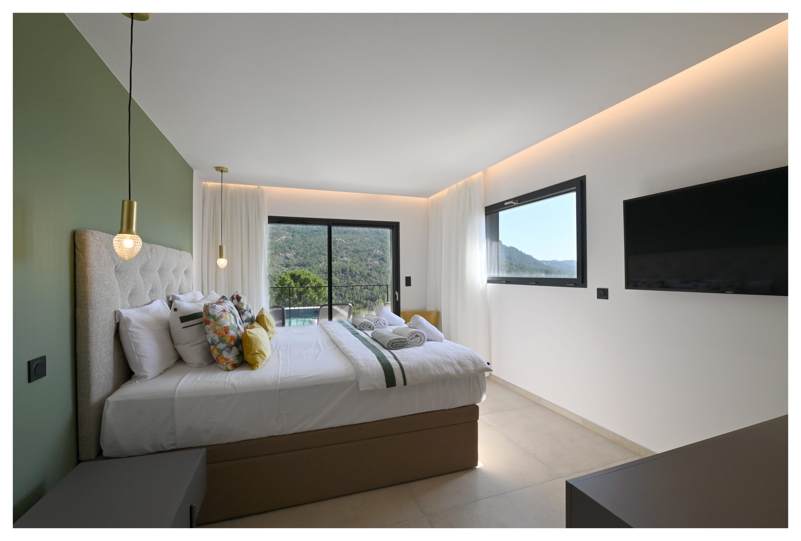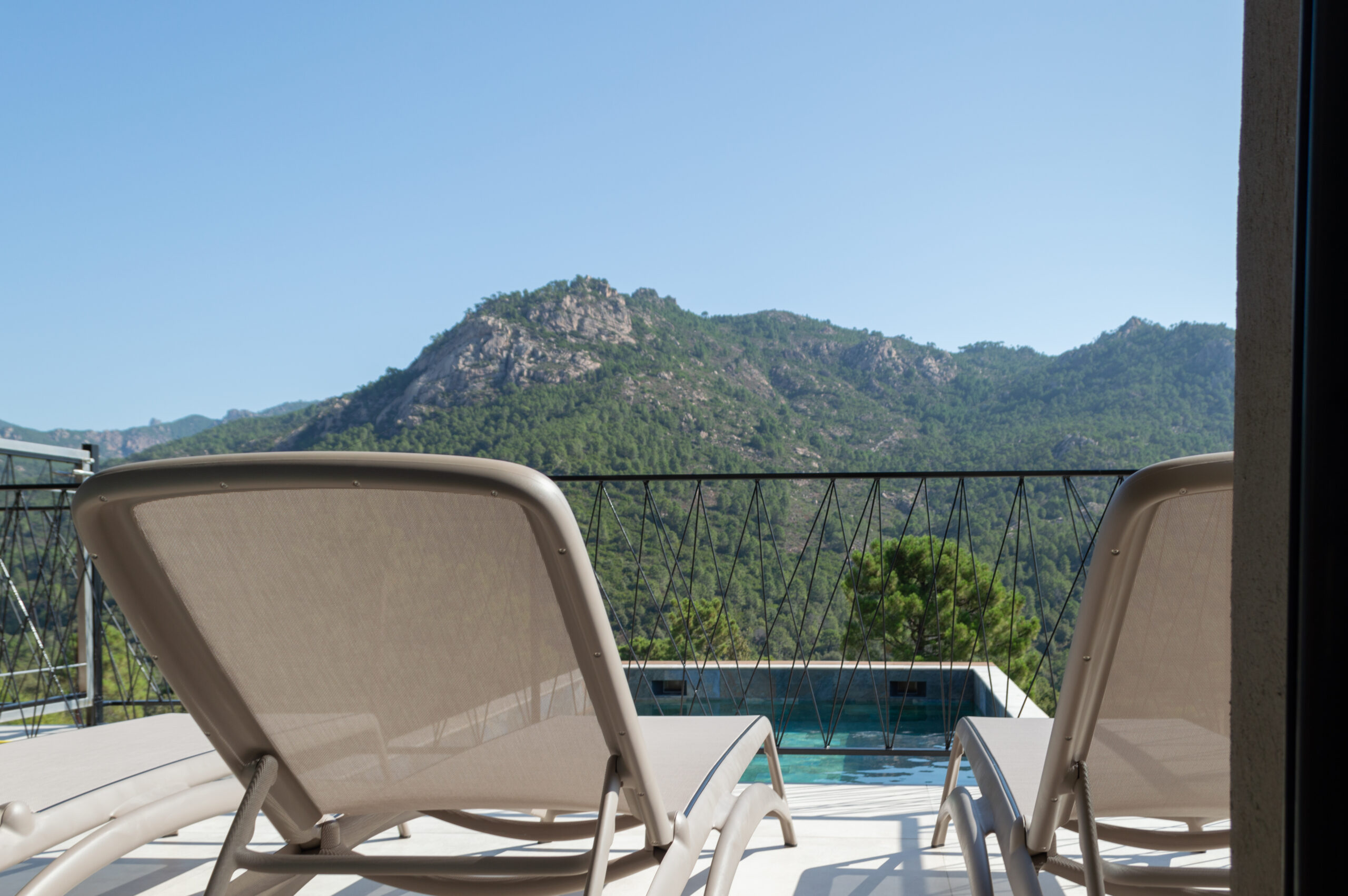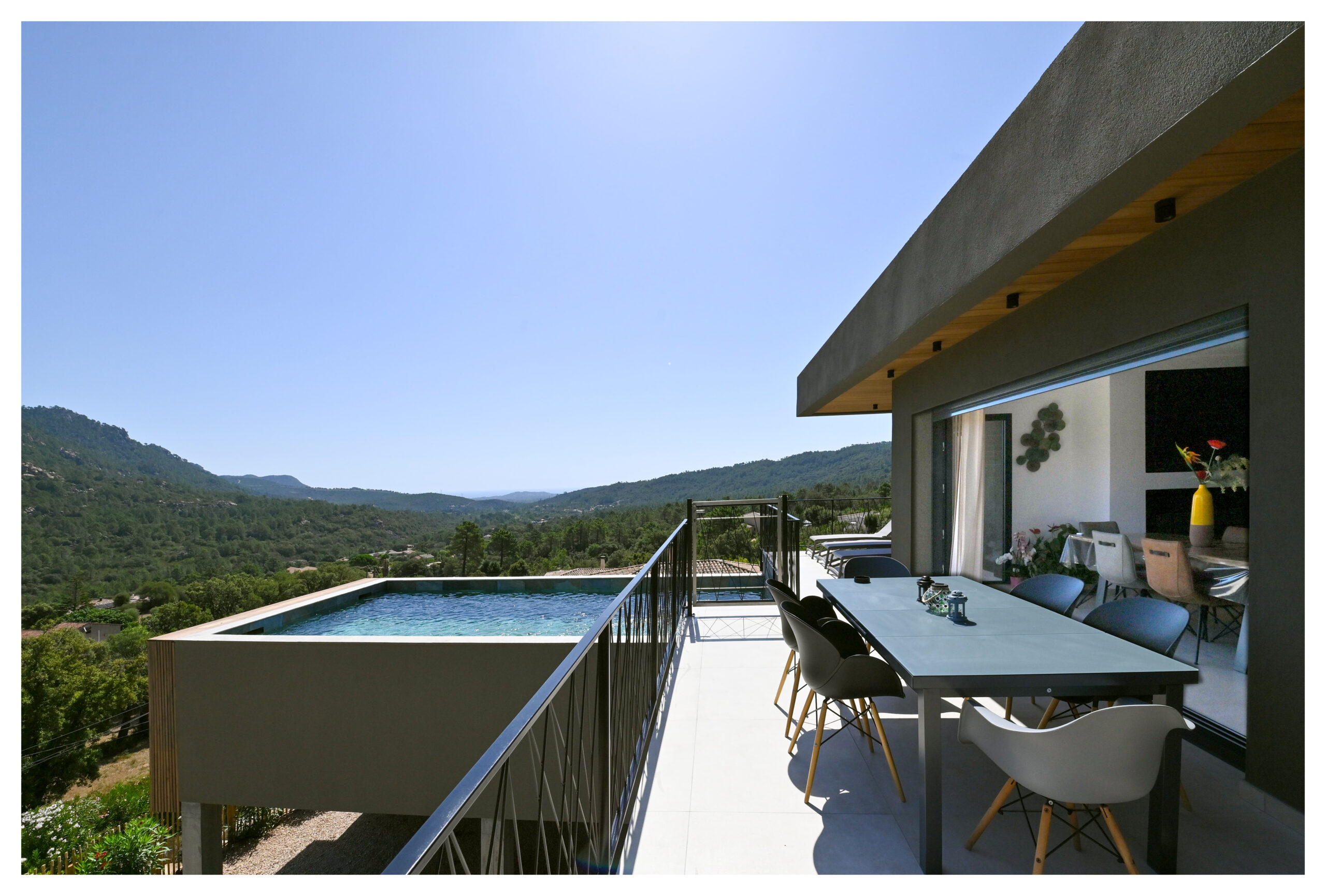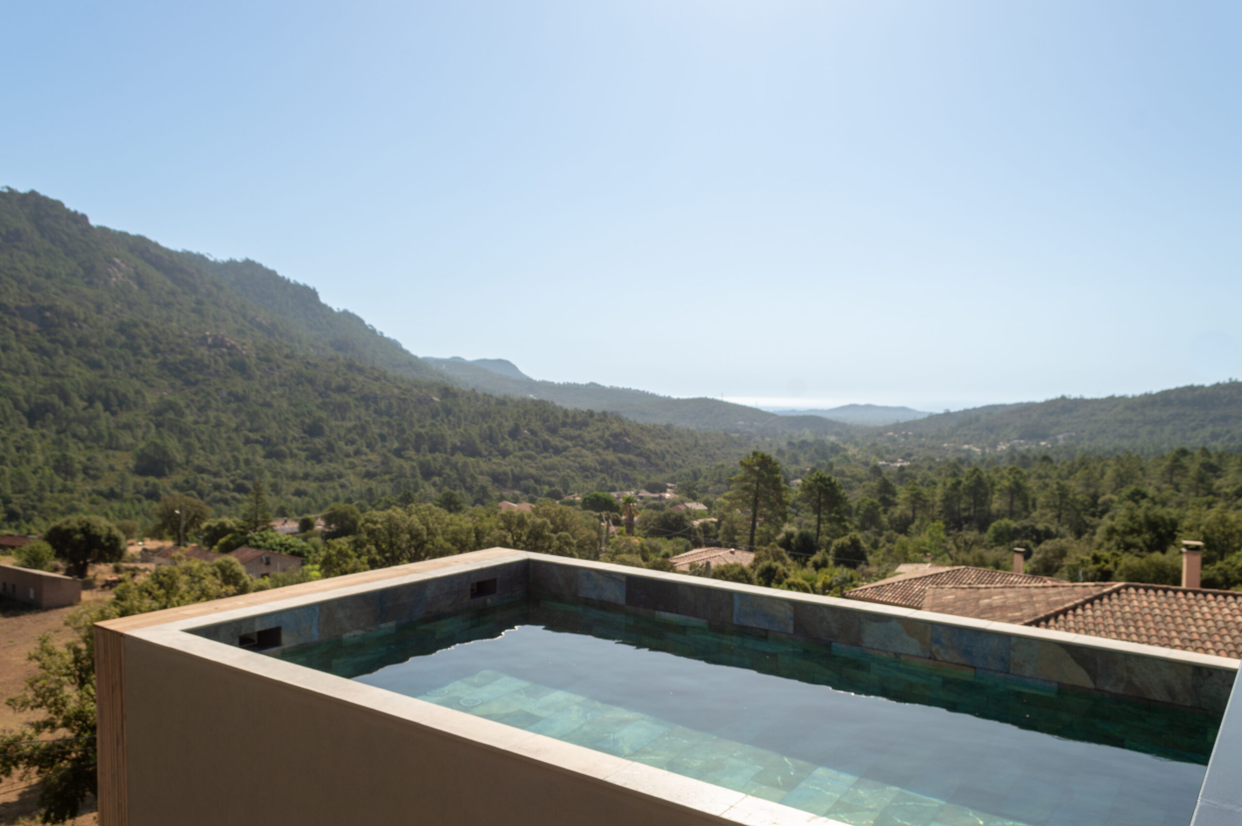 Située sur les hauteurs de Taglia Rosso cette villa contemporaine s’élève face à la montagne vous offrant une vue spectaculaire sur les massifs montagneux et la mer au loin.