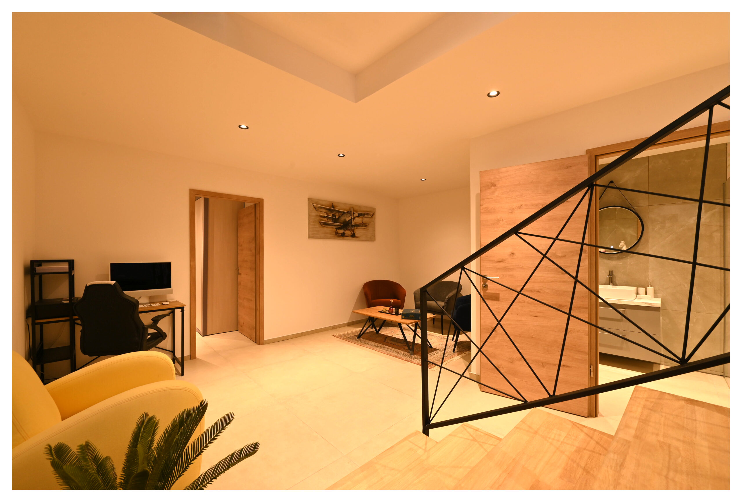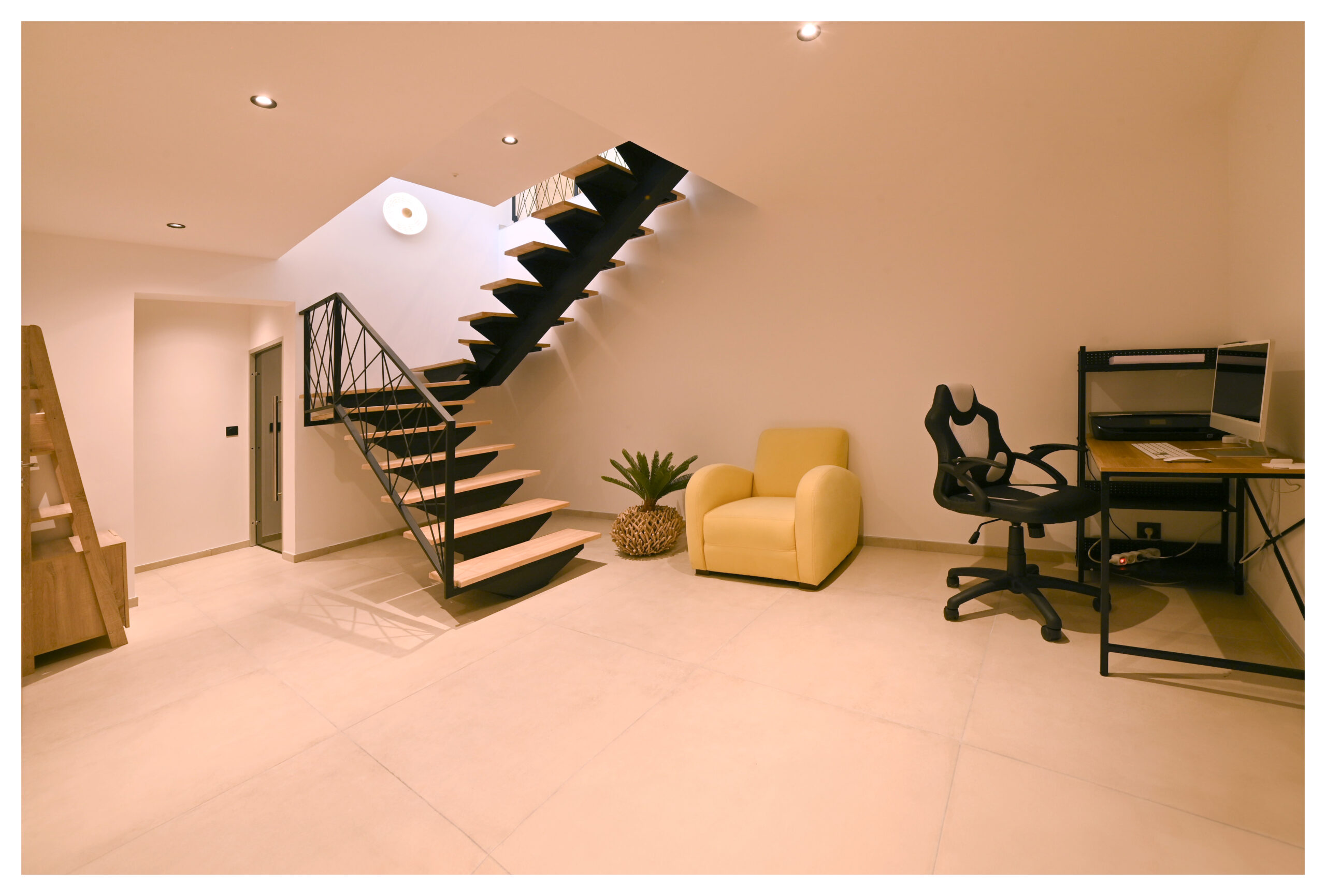 Un escalier vous donnera accès au niveau inférieur où se situe la 3ème chambre, la salle de bain indépendante, l’espace de travail ainsi que le coin laverie et le hammam. Un canapé lit vous permettra de bénéficier de 2 couchages supplémentaires .